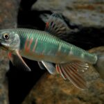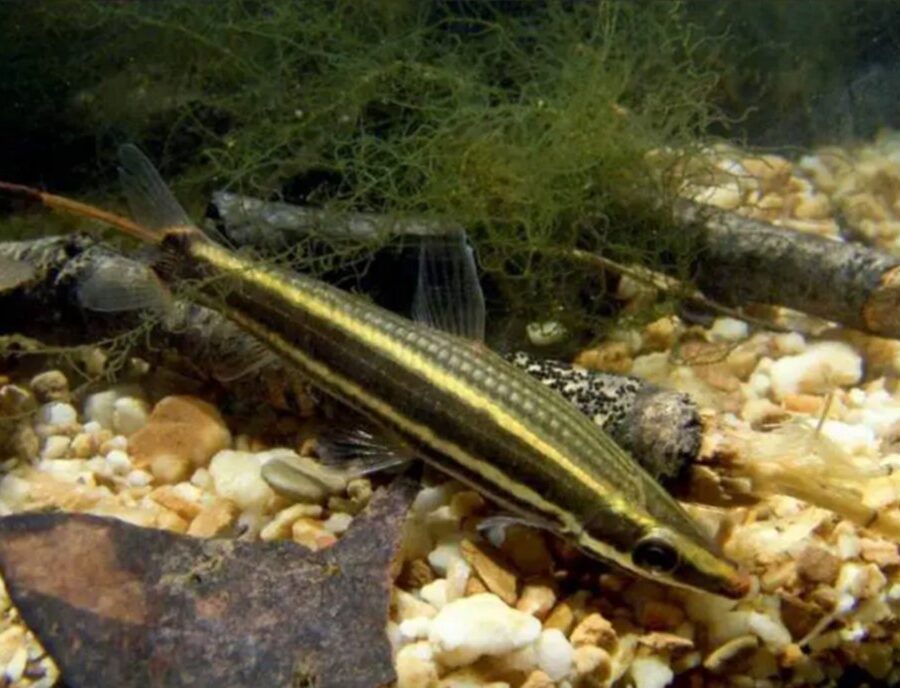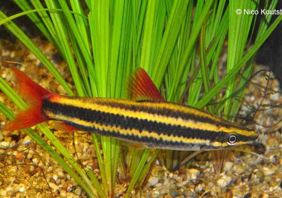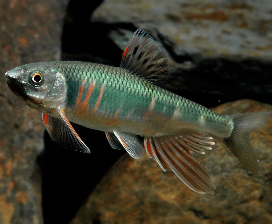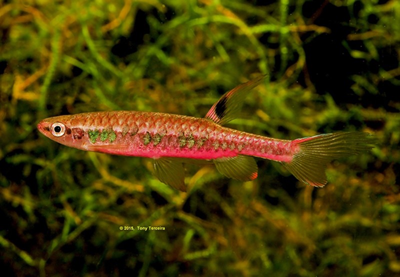 Nome Científico: Krobia xinguensis (Kullander, 2012) Ordem: Cichliformes — Família: Cichlidae Nome popular: Ciclídeo de Bochecha Vermelha — Inglês: Red-cheek Krobia Distribuição: América do Sul, bacia do