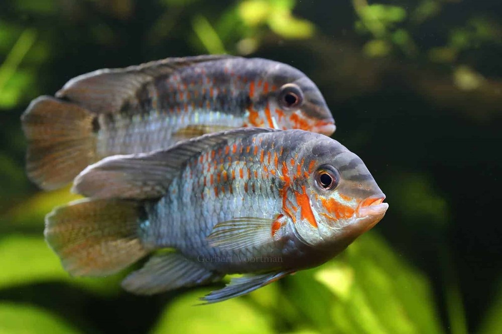 Nome popular: Ciclídeo de Bochecha Vermelha — Inglês: Red-cheek Krobia
