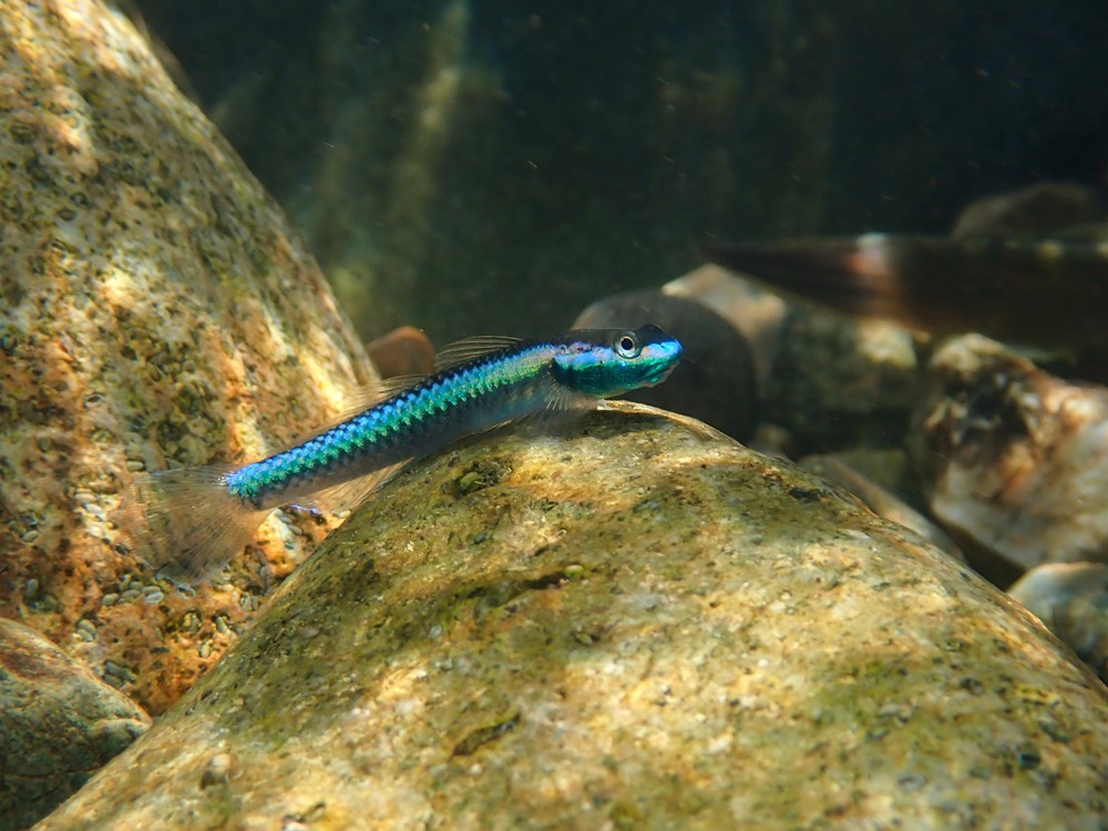 Comportamento e Compatibilidade: Espécie extremamente pacífica, sua agressividade se limita entre os machos da espécie durante época de reprodução. Embora não possua comportamento gregário, pode ser mantido em grupos desde que o aquário contenha adornos que quebrem a linha de visão dos espécimes machos. Fêmeas são pacíficas entre si e podem ser mantidas na proporção de duas para cada macho.